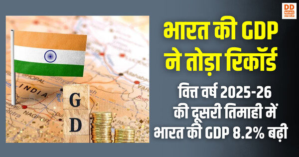 India GDP Growth : भारत की GDP ने तोड़ा रिकॉर्ड, वित्त वर्ष 2025-26 की दूसरी तिमाही में भारत की GDP 8.2% बढ़ी