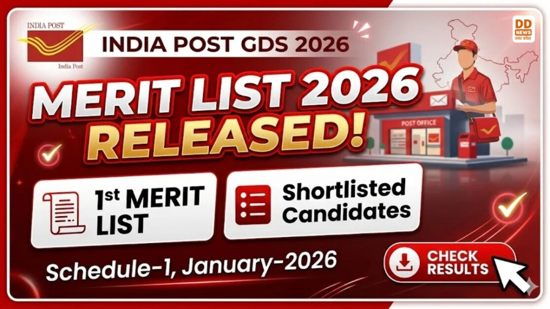भारतीय डाक विभाग की ओर से सरकारी नौकरी का इंतजार कर रहे युवाओं के लिए बड़ी खबर आई है। ग्रामीण डाक सेवक (GDS) भर्ती 2026 की पहली मेरिट लिस्ट आधिकारिक तौर पर जारी कर दी गई है। इस भर्ती अभियान के जरिए देशभर के विभिन्न डाक सर्किलों में हजारों खाली पदों को भरा जाना है।