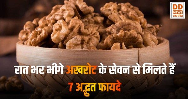 अखरोट को “ब्रेन फूड” के तौर पर जाना जाता है, लेकिन क्या आप जानते हैं कि यह सिर्फ दिमाग के लिए नहीं, बल्कि आपके पूरे शरीर के लिए फायदेमंद है? अगर आप इसे रात भर भिगोकर खाते हैं तो इसके फायदे दोगुने हो जाते हैं। यह सरल, लेकिन प्रभावी तरीका आपके स्वास्थ्य को नई दिशा दे सकता है। आइए जानते हैं, रात भर भीगे अखरोट के सेवन से मिलने वाले 7 शानदार फायदे जो आपकी सेहत को बेहतर बना सकते हैं।